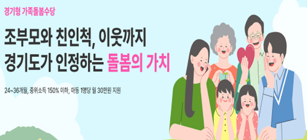 경기도는 기존 ‘조부모 수당’을 발전시켜 ‘경기형 가족돌봄수당’으로 확대 시행 중입니다.
