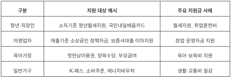 이외에도 첫만남이용권(200만 원), 보금자리론 금리우대, 전기·가스 요금 감면 등 생활밀착형 혜택이 다수 포함되어 있습니다.