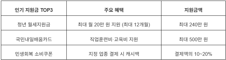 예를 들어, 청년층이라면 “청년 월세지원금”과 “국민내일배움카드”를 한 번에 추천받을 수 있습니다.